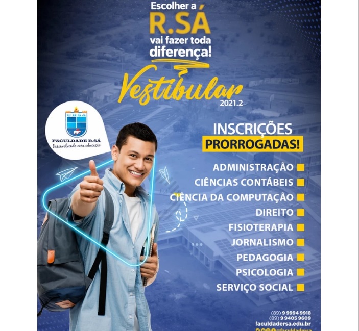 Inscrições prorrogadas para o Vestibular 2021.2 da Faculdade R.Sá
