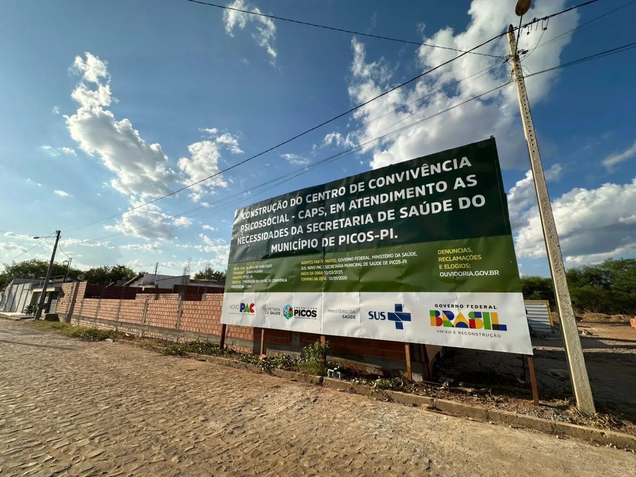 A construção do Centro de Atenção Psicossocial (CAPS) no bairro Ipueiras, em Picos, avança em ritmo acelerado. O novo equipamento de saúde mental, orçado em R$ 1.648.038,00, tem previsão de entrega para janeiro de 2026 e visa fortalecer a rede de atenção psicossocial do município.